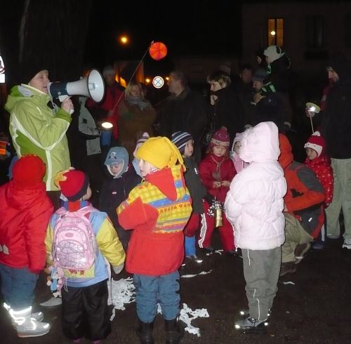 Během průvodu se děti i jejich rodiče dozvěděli něco o svatomartinské tradici a naučili se i básničku o sněhových vločkách. Na závěr na malé "světlušky" čekala sladká odměna a teplý čaj.