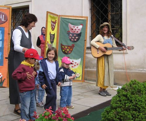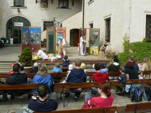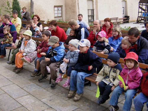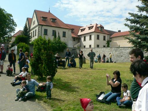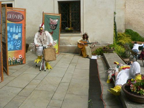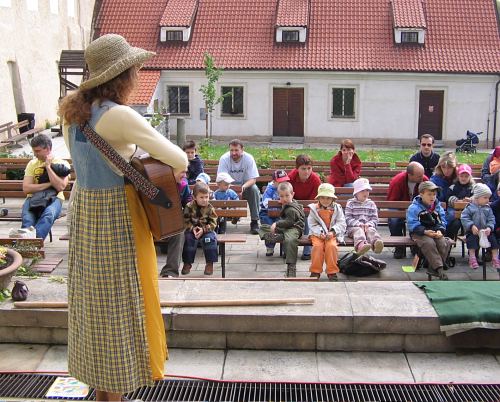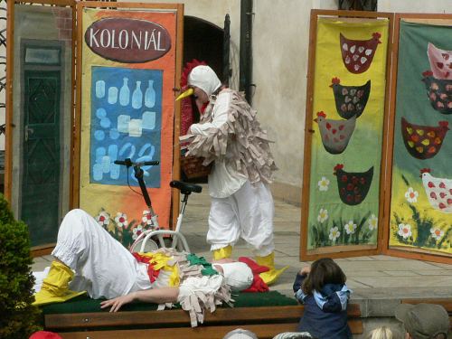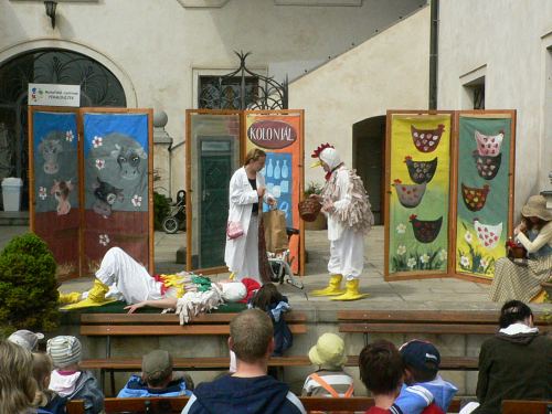 Dopoledne, kdy počasí ještě hrozilo svou nepřízní, se zhruba dvacítka dětí bavila při vystoupení divadelníků z ochotnického souboru Netopýr z Týnce nad Sázavou. V představení se zpěvy si zahrálo i několik diváků a pohádka O kohoutkovi a slepičce zaujala malé i dospělé.