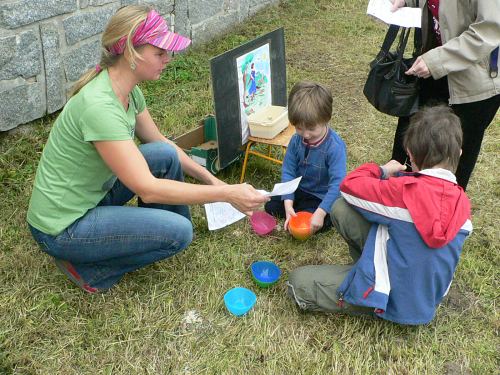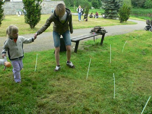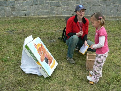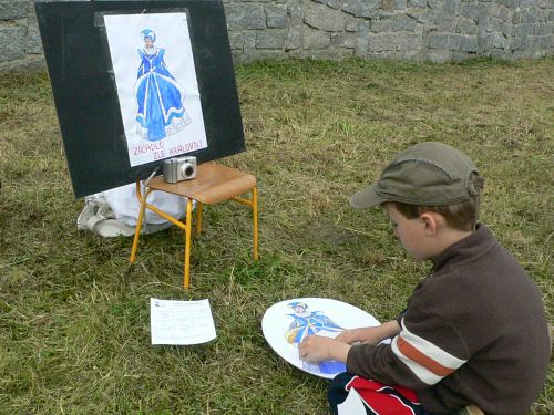Po obědě, kdy se počasí umoudřilo a ukázalo svou slunečnou tvář, se přilehlý park proměnil v soutěžní arénu. Děti tu čekaly pohádkové soutěže. Na čtyři desítky dětí tak vařily kouzelný lektvar, krmily vlka nebo uklízely u Popelky. Za to si vysloužily odměnu. V průběhu soutěží se děti mohly podívat na výcvik psů a některé pejsky si i pohladit.