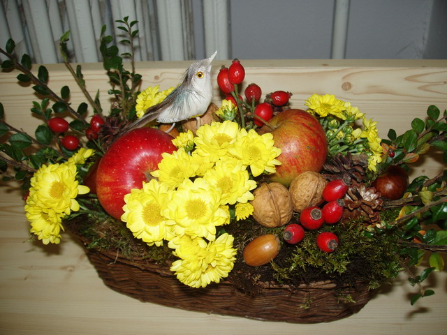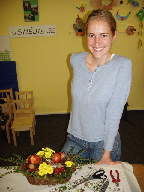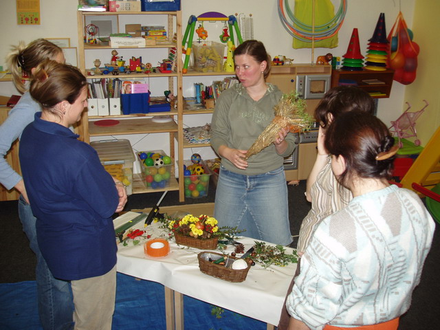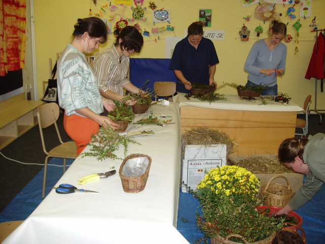 Na semináři "Podzimní aranžmá" si pětice maminek vytvořila pěkné podzimní dekorace ze sena a přírodnin. Dokonce se povedla i pracnější zvířátka a všechny účastnice měly plné ruce práce, aby své výtvory odnesly.