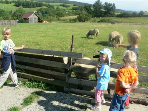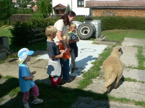 Třetí srpnový výlet, 21. srpna, vedl přes sv. Annu a rozhlednu na Pepři na dětské hřiště do Studeného. Na nejdelší procházku dorazily za krásného letního počasí tři maminky s pěti dětmi. Výletníci se cestou pokochali krásnou vyhlídkou na Jílové. Děti poctivě došlapaly až k rozhledně, cestou stihly hladit a krmit ovečky. Dokonce téměř všechny vyšlapaly i na vrchol rozhledny. Pak následovala odměna a posilněné děti vyrazily na hřiště do Studeného, odkud se ale už vezly autem a autobusem domů. :)