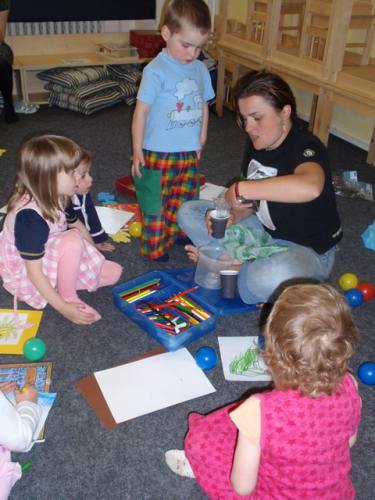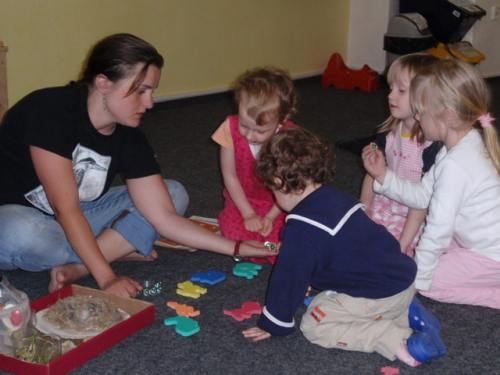 Ve čtvrtek 16. dubna odpoledne jsme si společně s našimi dětmi v herně zahráli hru na jaro. Děti se pod vedením zkušené lektorky Jany dozvěděly, jak se na jaře probouzí příroda ze zimního spánku. Zahrály si na semínka, ze kterých vyrůstají nové rostliny, s nadšením pomohly posbírat poztrácená žábí vajíčka, přemisťovaly malé žabky do rybníčku a učily se jak se staví ptačí hnízda a k čemu slouží. Také si poslechly pohádku o jaru a zjistily, co všechno je potřeba k tomu, aby vše fungovalo tak, jak má. Společně jsme také zaseli do zeminy semínka, abychom přímo v herně mohly pozorovat, jak rychle rostlinky rostou. Nechybělo ani malování a všechny děti si hodinový program s nadšením užívaly.
