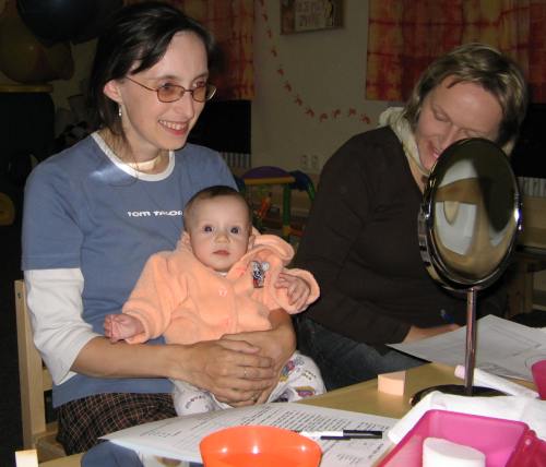 V úterý 5. května poradila vizážistka a nezávislá kosmetická poradkyně Mary Kay Ilona Nováková sedmi maminkám, jak se zorientovat v dekorativní kosmetice. Odhalila i několik profesionálních triků, jak zvýraznit přednosti a zakrýt nedostatky. Dodávala i odvahu při zkoušení a tréninku denního líčení. Kurz proběhl v příjemné a přátelské atmosféře a povídání a zkoušení se protáhlo na téměř tři hodiny. Děkujeme.