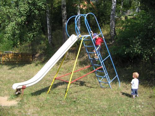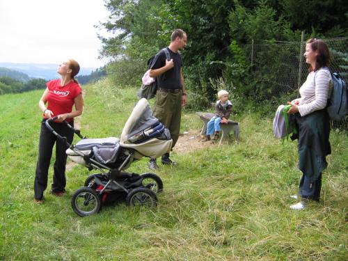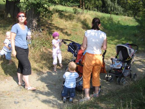 Třetí a poslední letošní letní výlet mířil do Studeného. Krátce po půl desáté se skupinka šesti maminek a devíti dětí vydala přes náměstí, kde část výpravy doplnila zásoby, k bývalému pivovaru. Pak všichni zdolali kopec ke Sv. Anně a pokračovali přímo do Studeného kolem podniku Haki na dětské hřiště. Tam si děti vyzkoušely houpačky, skluzavku, kolotoč i pískoviště. Po občerstvení a hlavně doplnění tekutin se výletníci vydali opět do kopce. Na vrcholu Pepře pak část výpravy vyšplhala na rozhlednu a odměnou byl nádherný výhled na Jílové a blízké i daleké okolí. Výlet skončil v horkém dni opět v Jílovém, tentokrát ale v cukrárně. :) Délka trasy: do 5 km.