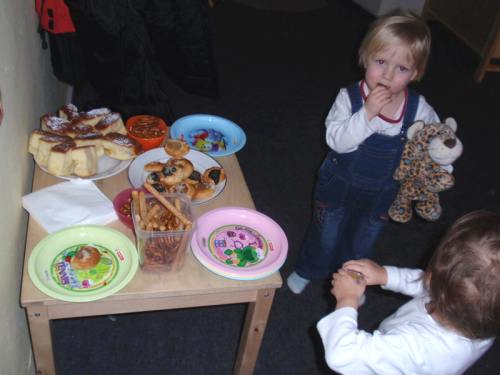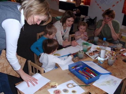Ve čtvrtek 19. února jsme si rámci odpolední herny společně s dětmi připomněli tradiční svátek "Tučný čtvrtek", který je předzvěstí vyvrcholení masopustního veselí. Říká se, že na Tučný čtvrtek mají lidé hodně jíst a pít, aby byli celý rok při síle a proto jsme dětem přichystali pohoštění ve formě koláčků, buchet a různých slaných pochoutek a společně si s nimi povídali, jaké dobroty by neměly na pořádných hodech chybět. Děti pak společně se svými rodiči malovaly, stříhaly a lepily nejrůznější dobroty, ze kterých jsme vytvořily permoníčkovy masopustní hody. Náš společný výtvor si můžete prohlédnout přímo v herně MC. Děkujeme dětem i maminkám za vstřícný a kreativní přístup!