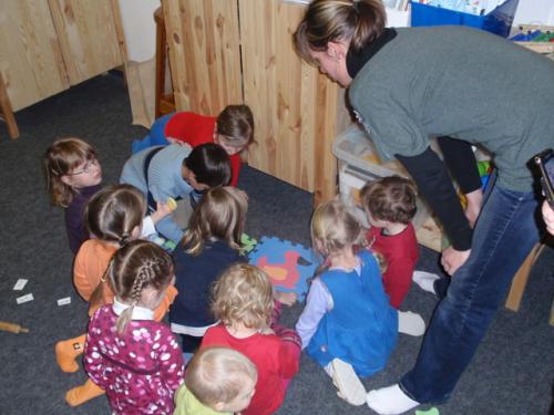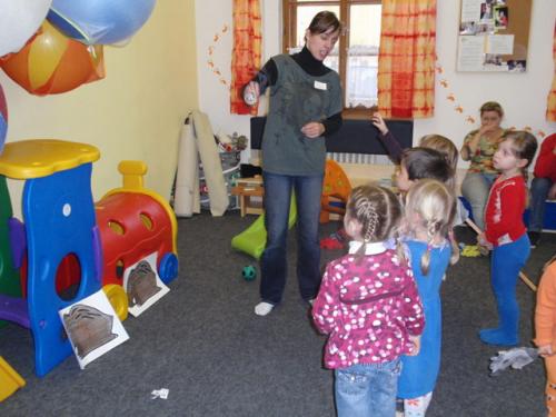 Dvacítka dětí s doprovodem se ve čtvrtek 15. ledna zúčastnila v herně MC výukového programu Stopař, který připravila lektorka z Ochrany fauny ČR. Děti se aktivně zapojily do "indiánského běhu", během kterého se naučily poznávat život a stopy různých zvířat žijících na našem území. Díky své hravosti si zajezdily s dřevěnými koníky, trefovaly se do divokých kanců, zahrály si indiánskou hudbu, skládaly podobu vodních tvorů a zkoumaly ptačí hnízda. Také si výtvarně zařádily při vytváření otisků a výrobě indiánského talismanu z keramické hmoty. Hodinový program utekl jako voda a děti si indiánské řádění náležitě užily.