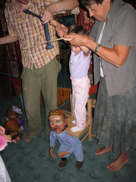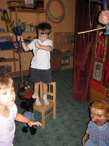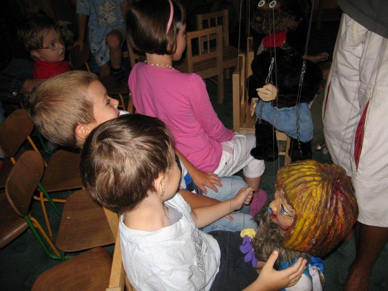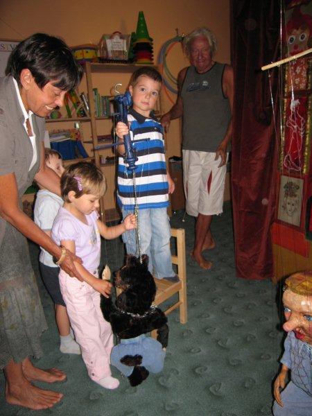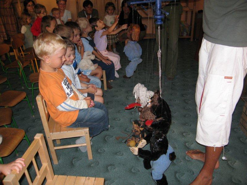 V pondělí 19. července zavítalo do našeho Mateřského centra Permoníček loutkové divadlo s představením pohádky Kubula a Kuba Kubikula. Na dvacítku dětí se přišlo pobavit poutavým příběhem o medvědáři Kubovi, medvědovi Kubulovi a strašidlu Barbuchovi. Asi hodinový příběh byl sice pro děti trochu dlouhý, přesto při strašlivém Barbuchově „Barbarbarbarbaaaar!!!!“ zústalo dětské obecenstvo v tichém úžasu. Po skončení pohádky se děti mohly s loutkami vyfotografovat a vyzkoušet si, jak se taková velká marioneta vodí.