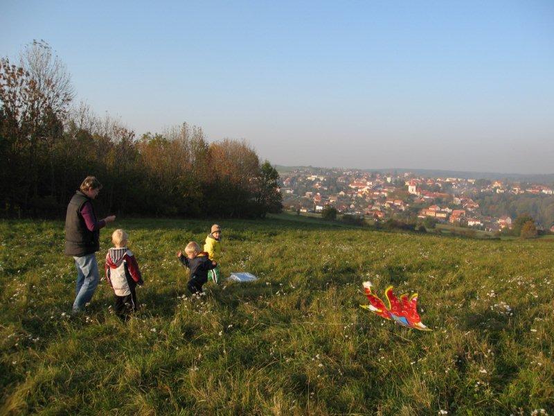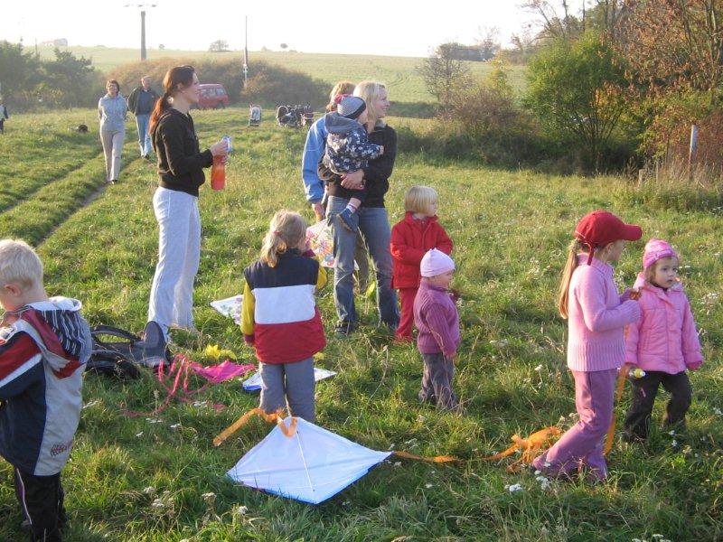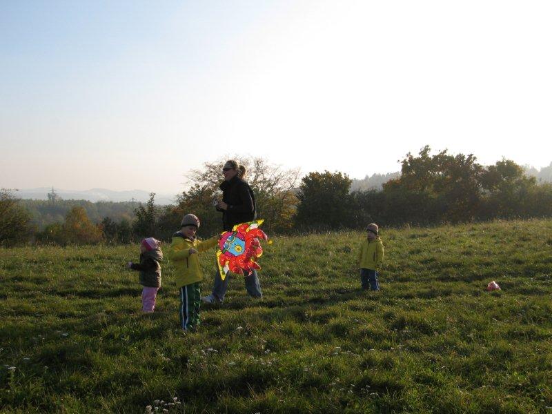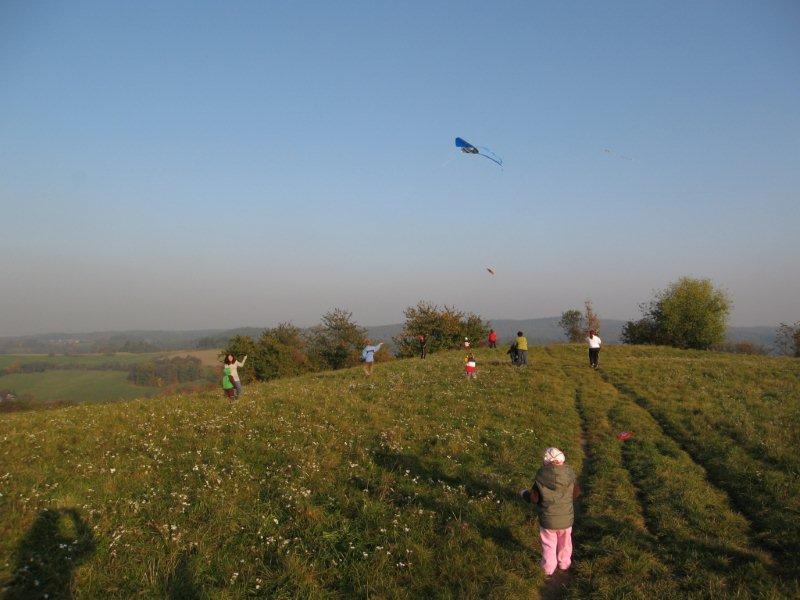 Opět po roce, v krásné podzimní odpoledne jsme se s Permoníčkem vydali na kopec Sv. Annu pouštět draky. Dětí bylo plno a společně s rodiči si s sebou přinesli své – malé i velké, v obchodech zakoupené či doma s láskou vyrobené - draky. Každý byl zvědavý, jak mu právě ten jeho poletí. Obloha byla bez mráčku, vánek pofukoval tak akorát, takže podmínky byly zcela ideální. Dráčkové pomalu stoupaly k výšinám, některým tam vydržel po celou dobu bez jediného slétnutí na zem. Na závěr se všem rozjásaným dětem rozdaly dobroty spolu s diplomy. Slunce začínalo zacházet za kopce a dalo najevo, že nic se nemá přehánět, byl čas vyrazit zpět domů. Bylo to krásně strávené odpoledne!