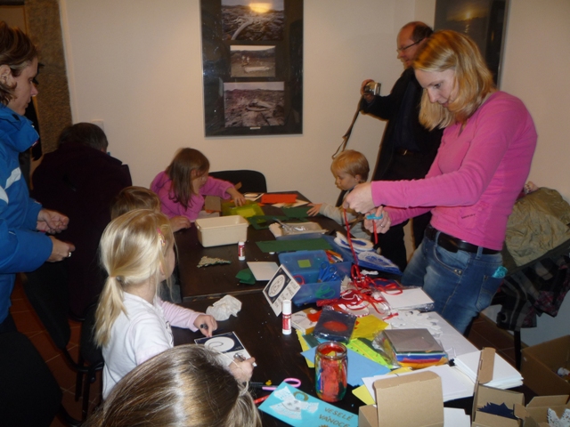 V sobotu 10.12. proběhla v muzeu v rámci II. vánočního předváděcího dne výtvarná dílna MC Permoníček. Děti si mohly mezi 9 a 16 hod. vyrobit vánoční přáníčka, papírové vločky, stromečky zdobené barevnou rýží a svícny ze sklenic od zavařenin. Menším dětem šly lépe vločky, kde stačilo dělat čáry máry zmizíkem, větší děti vyhledávaly hlavně výrobu přáníček a malování zlatými a stříbrnými fixy. Celkem přišlo k našemu stolu v Konírně muzea kolem 40ti dětí. Děkujeme všem maminkám, které nezištně pomáhaly v naší dílničce. Děkujeme také rodičům, kteří nám dávali drobné příspěvky na materiál, což nám umožní uspořádat opět podobnou dílnu před Velikonocemi.