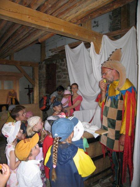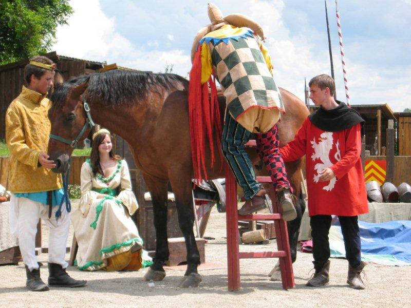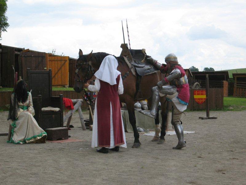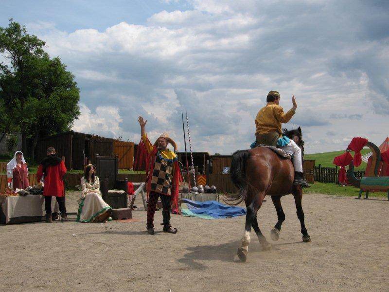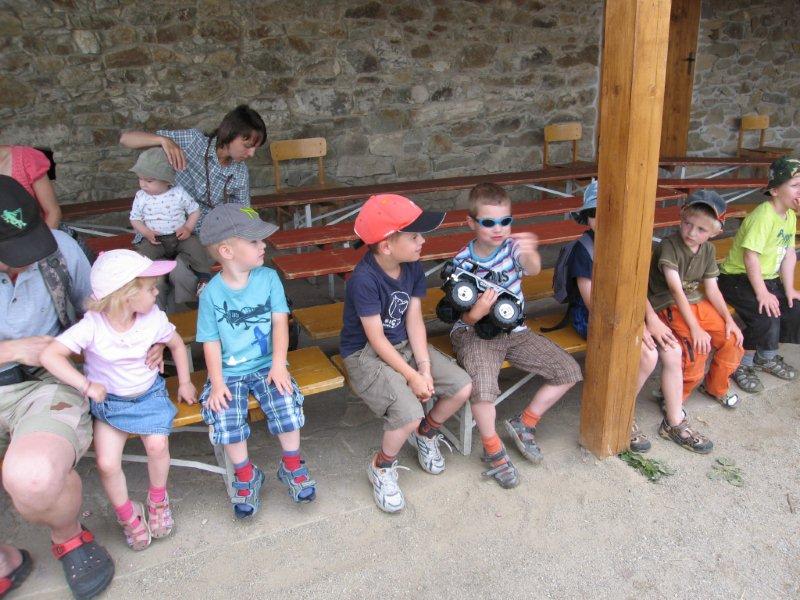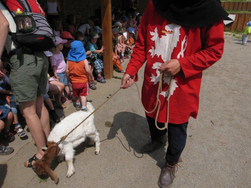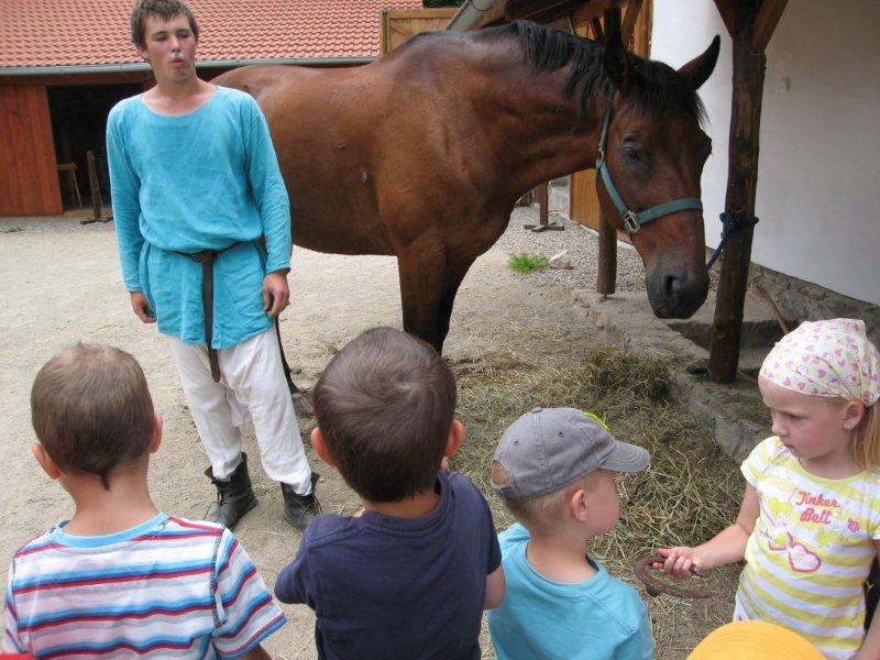 Ve čtvrtek 16.června jsme společně s Permoníčkem zavítali do obce Takonín na Benešovsku do Pěnkavova dvora na dětské didaktické představení „Princ Bajaja a princezna“ na motivy Boženy Němcové. Sraz jsme si určili přímo v Takoníně, doprava byla individuální. Před samotným zahájením představení se ještě mohly děti vydovádět na návsi na malém dětské hřišti. Poté jsme se sborem přesunuli do Pěnkavova dvora do hlediště. Představení bylo pod širým nebem, kolem nás byla k vidění spousta historických artefaktů a rekvizit, které si děti po představení mohly postupně obejít, vyzkoušet a dozvědět se něco zajímavého. Děj pohádky je všem chronicky znám, nicméně tato pohádka byla ozvláštněna o živá zvířata – koně a kozy a výtvarně velmi zdařile pojatého tříhlavého draka. Celou pohádku vtipně převyprávěl Kašpárek. Po představení se obecenstvo rozdělilo do několika skupin, ty pak obcházely jednotlivá stanoviště. Dozvěděli jsme se tak jak se ve středověku spalo, koupalo, jaké šaty se nosily v jaké epoše a jak se chovat v blízkosti koně. Předvedeny nám byly různé sečné zbraně, děti si s nadšením vyzkoušely rytířskou přilbici. V závěru celé akce začalo hodně pršet a některým tento déšť zkomplikoval výjezd z provizorního parkoviště na nedalekém poli. Ale jak to tak v pohádkách bývá, zlo nemělo žádnou šanci! Z rozbahněného pole se nakonec dostaly všechny povozy, nikdo nezůstal v bažinách uvězněn. Výlet za didaktickou pohádkou do Takonína se velmi podařil a všichni si odváželi plno zážitků.