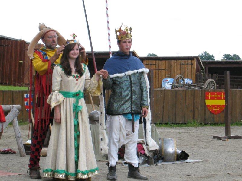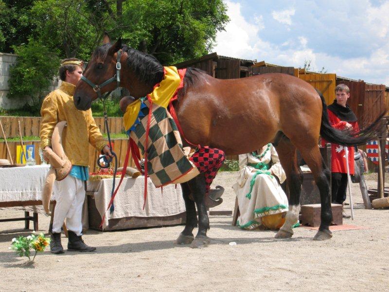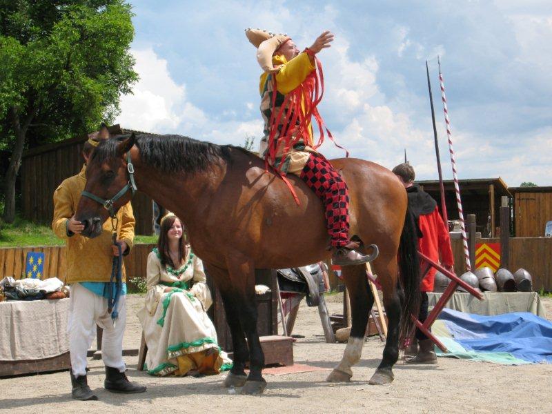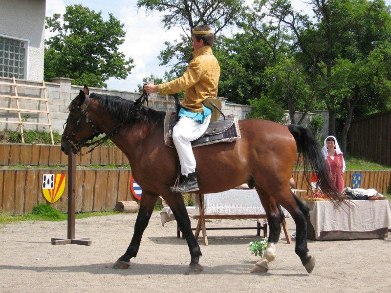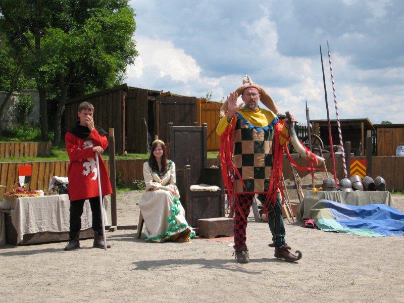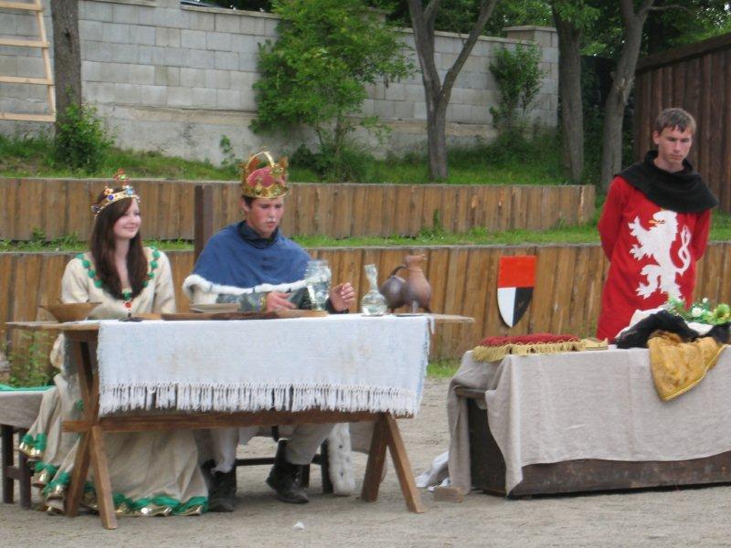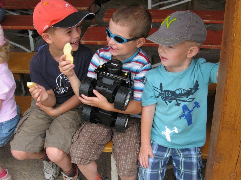 Ve čtvrtek 16.června jsme společně s Permoníčkem zavítali do obce Takonín na Benešovsku do Pěnkavova dvora na dětské didaktické představení „Princ Bajaja a princezna“ na motivy Boženy Němcové. Sraz jsme si určili přímo v Takoníně, doprava byla individuální. Před samotným zahájením představení se ještě mohly děti vydovádět na návsi na malém dětské hřišti. Poté jsme se sborem přesunuli do Pěnkavova dvora do hlediště. Představení bylo pod širým nebem, kolem nás byla k vidění spousta historických artefaktů a rekvizit, které si děti po představení mohly postupně obejít, vyzkoušet a dozvědět se něco zajímavého. Děj pohádky je všem chronicky znám, nicméně tato pohádka byla ozvláštněna o živá zvířata – koně a kozy a výtvarně velmi zdařile pojatého tříhlavého draka. Celou pohádku vtipně převyprávěl Kašpárek. Po představení se obecenstvo rozdělilo do několika skupin, ty pak obcházely jednotlivá stanoviště. Dozvěděli jsme se tak jak se ve středověku spalo, koupalo, jaké šaty se nosily v jaké epoše a jak se chovat v blízkosti koně. Předvedeny nám byly různé sečné zbraně, děti si s nadšením vyzkoušely rytířskou přilbici. V závěru celé akce začalo hodně pršet a některým tento déšť zkomplikoval výjezd z provizorního parkoviště na nedalekém poli. Ale jak to tak v pohádkách bývá, zlo nemělo žádnou šanci! Z rozbahněného pole se nakonec dostaly všechny povozy, nikdo nezůstal v bažinách uvězněn. Výlet za didaktickou pohádkou do Takonína se velmi podařil a všichni si odváželi plno zážitků.