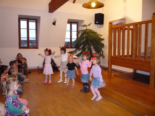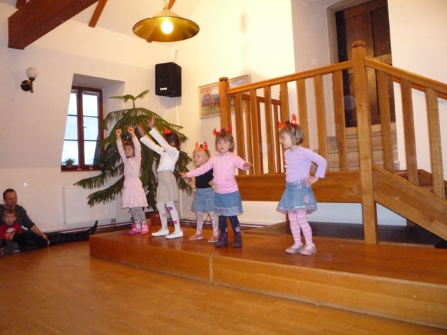 V neděli 4.12. proběhla v KICu Mikulášská besídka. Na úvod zatancovala děvčátka z kroužku Tanečky a Myšky pod vedením instruktorky Báry Kulmanové dva mikulášské tanečky. Pak následovalo zpívání koled a mikulášských písniček dětmi z MŠ Pod školkou pod vedením paní učitelky Gábiny Novákové. Děti měly za úkol rozezpívat celé dětské publikum. Spolu s paní učitelkou naučily ostatní písničku Mik, miku, Mikuláš, kterou později přivolávaly Mikuláše. Také naučily ostatní prima pohybovou básničku o čertovi, který snědl bramboru. Když tedy opravdu přivolaly Mikuláše, čerta a anděla, ukázalo se, že místo čerta dorazila docela hodná čertice Luciána. Nikdo se nemusel bát. Mikuláš promluvil dětem do duše a pak měly možnost zasloužit si nadílku soutěžemi a písničkou. Děti nosily oříšky na lžíci, ujídaly bonbóny na provázku a do pytlů třídily jablka, ořechy a brambory. Když už bylo soutěží dost, ochladily děti čertici koulovačkou z papírových koulí. Nakonec ještě poslední písnička a prťata si mohla dojít pro balíčky, ale jen ti, kteří prošli pod Mikulášskou berlí. Větší děti už musely zazpívat samy nebo ve dvojici. Úplně na konec děti naučily básničku i čertici a Mikuláš se svým doprovodem slíbil, že dorazí i příští rok.