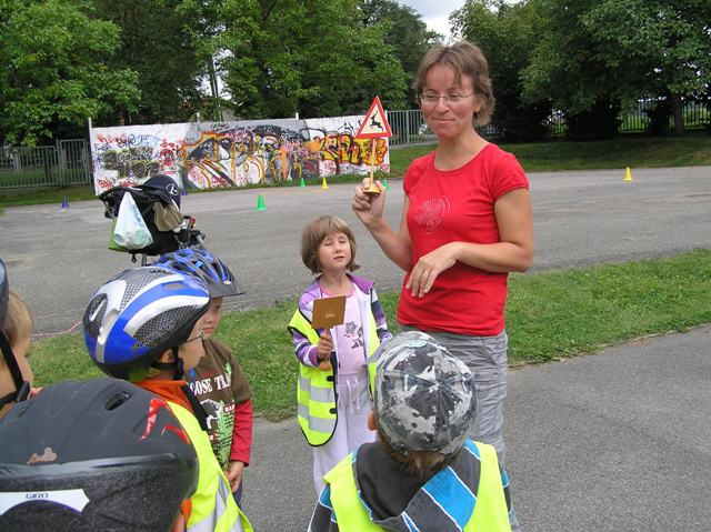 5.9. proběhl na školním hřišti Dopravní den. Původně měl být organizován BESIPem, ale nakonec vzhledem k dotační politice kraje, dopravní den organizovalo pouze Mateřské centrum a od BESIPu jsme měli jen dárečky pro děti. Dopravní den zahájily 2 třídy prvňáčků, které byly rozděleni do skupin a spolu s paní učitelkami, vychovatelkami a maminkami z MC plnily úkoly na stanovištích. Velkou radost nám udělal pan policista z městské policie v Jílovém, který nám i přes pozdní prosbu přišel pomoct. Dětem řekl základy přecházení po přechodech a chování na silnici. Prvňáčky vystřídaly děti z mateřského centra, kterých přišlo asi 20 (z toho ale většina jejich maminek pomáhala s organizací) a spolu s nimi dorazilo i 25 předškoláčků z Komenského MŠ se dvěma paní učitelkami. I tyto děti obcházely různá stanoviště, ale na rozdíl od školáčků jezdily i na kolech a odrážedlech jízdu zručnosti.