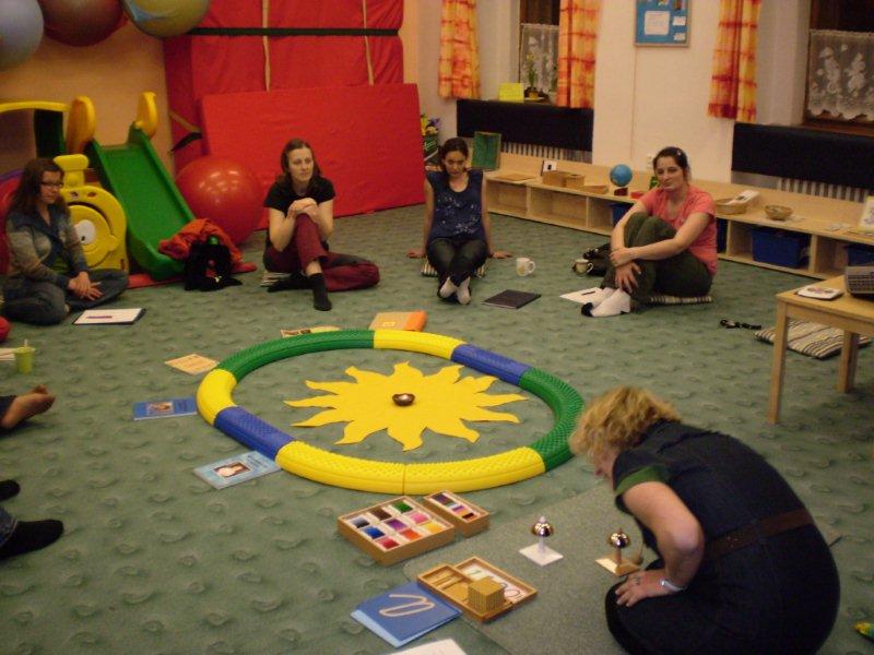 Ve čtvrtek 7. dubna se od osmé hodiny večer konal seminář Bc. Martiny Štanclové, pedagožky Montessori mateřské školy. Osm zvídavých žen mělo možnost na vlastní oči vidět a i jinými smysly si ozřejmit, jak vypadá tato výchovná a velmi propracovaná metoda v praxi. Martina Štanclová s sebou přinesla celou řadu pomůcek, které na přelomu 19. a 20. století vymyslela Marie Montessori – italská lékařka a geniální pedagožka. Atmosféra přednášky byla velmi přátelská a uvolněná – účastnice měly možnost poznat zásady této výchovné metody a všechny si souhlasně posteskly, že je škoda, že není těchto školek, jež by byly finančně dostupné většímu okruhu zájemců, více.