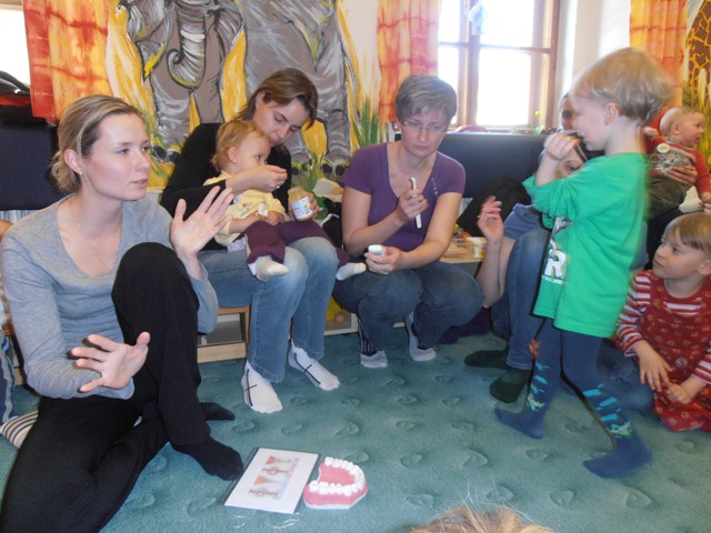 Ve čtvrtek 12.4. od 16.00 se sešlo 15 maminek se svými dětmi v herně MC, aby si poslechlo povídání zdravotní sestry na téma Péče o zoubky dětí – kdy navštívit poprvé zubního lékaře, jak čistit zoubky, zlozvyky zvyšující riziko vzniku zubního kazu, jak vybrat správný zubní kartáček. I přes velké množství účastníků myslím, soudě dle různých dotazů, že si každá maminka odnesla odpovědi na to, co je zajímalo. Účastníci dostali malé dárky od firmy Elmex a Meridol.