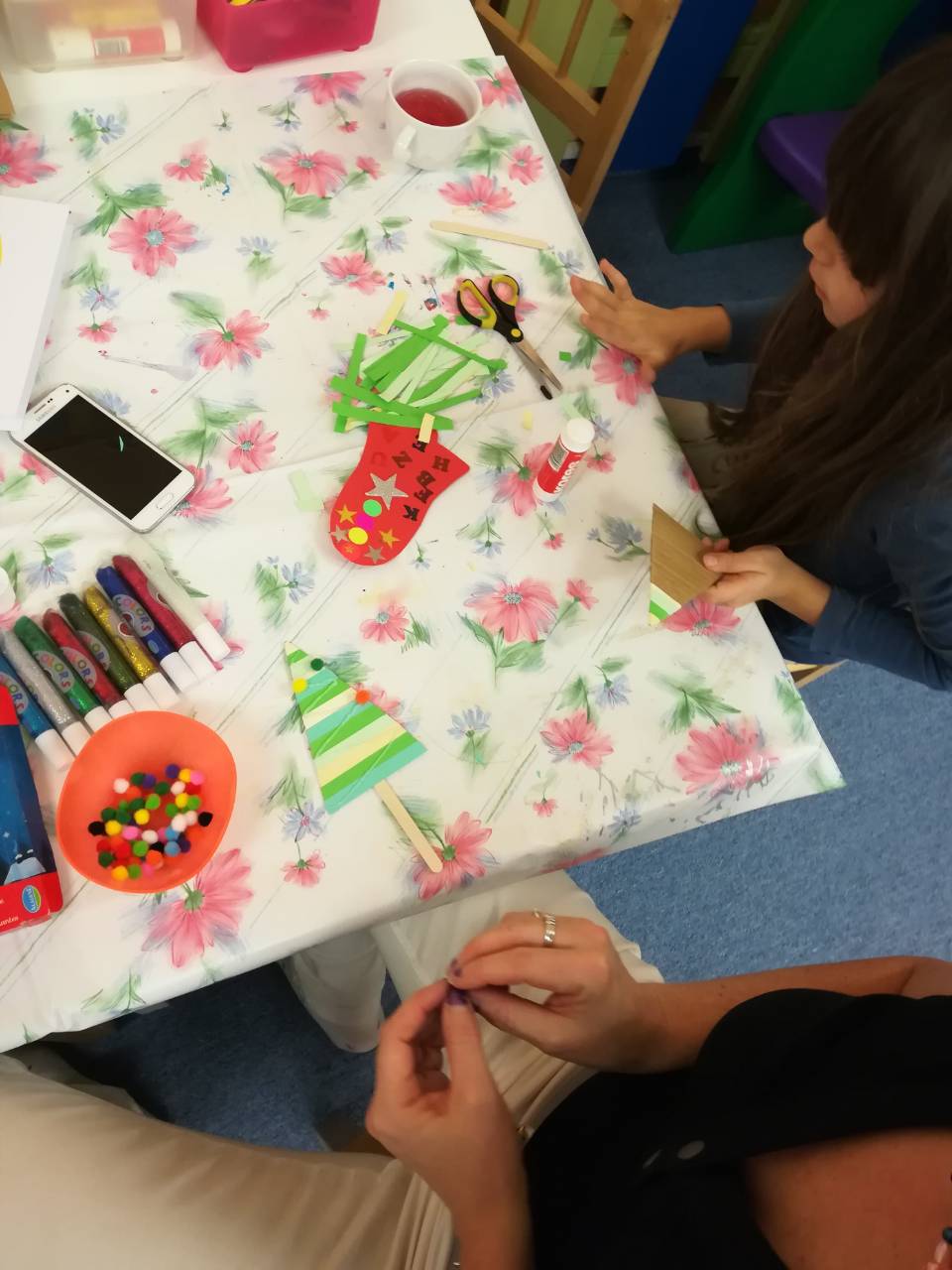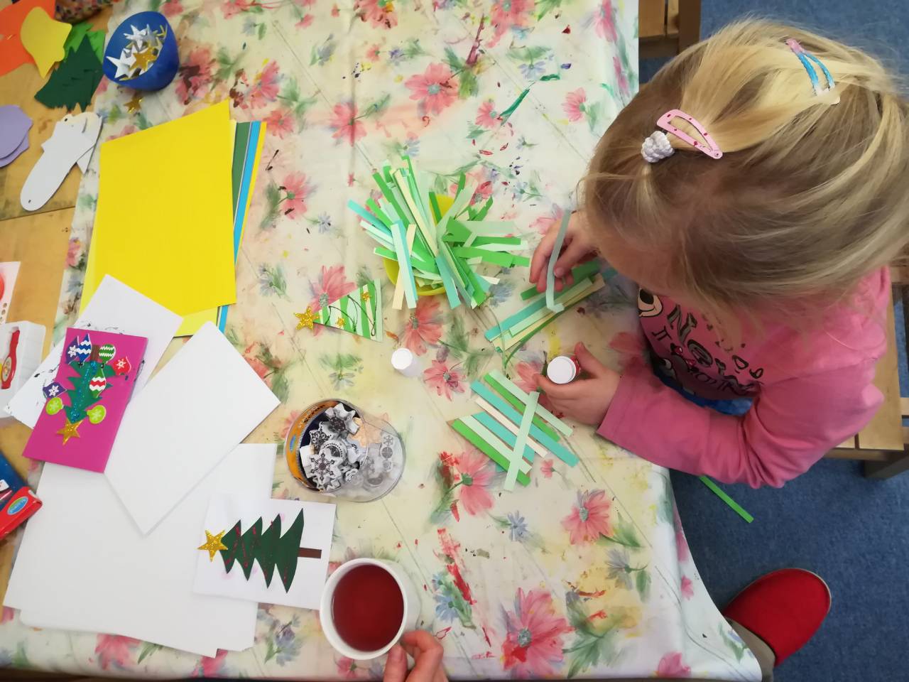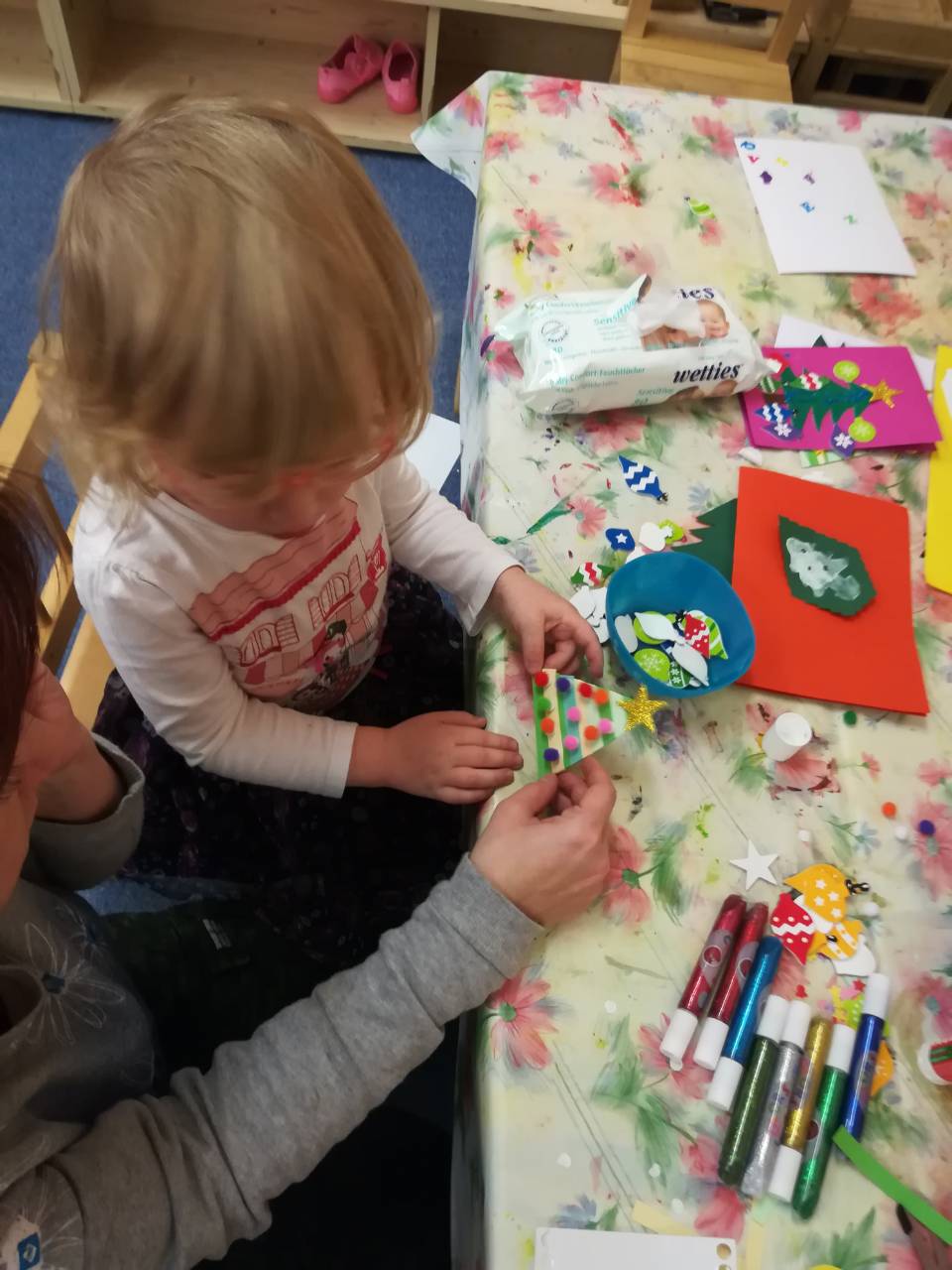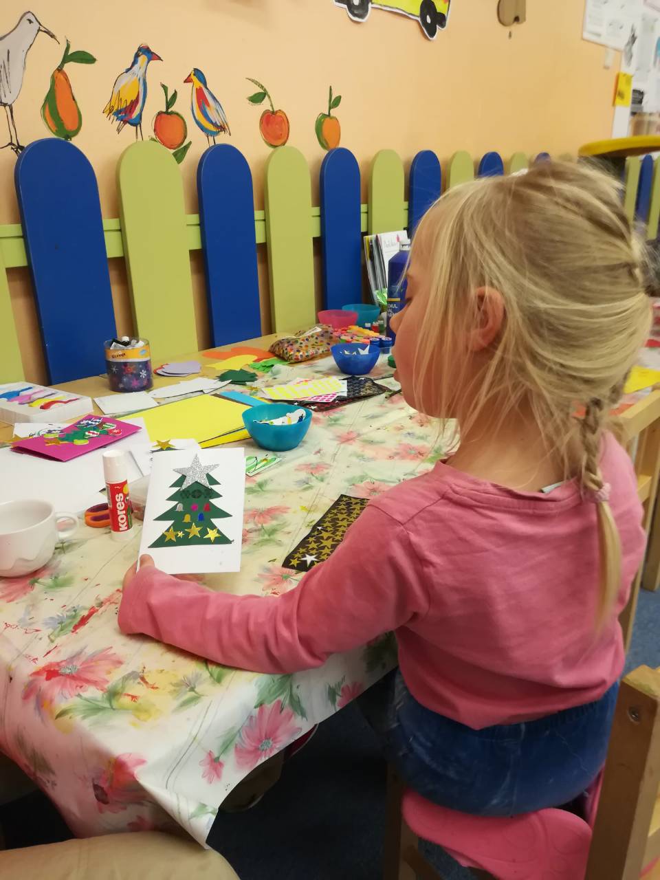 V pátek 1.12. měly děti v herně zpestření. Vyráběly vánoční přáníčka. Byly velice šikovné.
