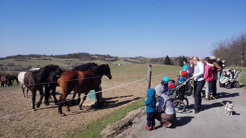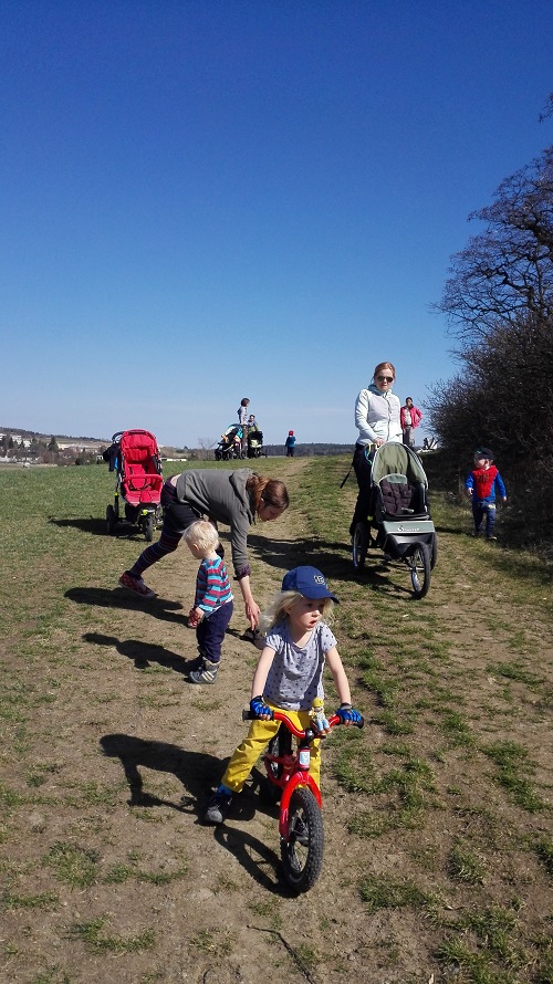 Zima byla dlouhá a snad i proto krásné dubnové dny vylákaly na první letošní výlet deset maminek a deset dětí. Vydaly jsme se od muzea, přes park na Boží skálu, pak cestičkou Na Vráži dolů do Drnky a kolem benzinky zpět na náměstí. Sluníčko nám svítilo na cestu a nevadil nám ani místy chladný vítr. Procházka nás unavila a každá rodinka mohla ukončit výlet po svém, dobrým obědem nebo kávičkou. Těšíme se na vás příště.