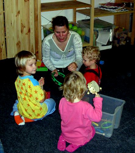 Na dvacet dětí během celodenního programu bavily v herně Helena Zápotocká, Lenka Farrow a Stáňa Babczynská. Děti si nejen všechny hračky v herně, ale protáhly se při tanečcích a zazpívaly si.