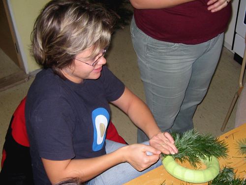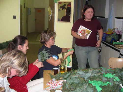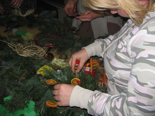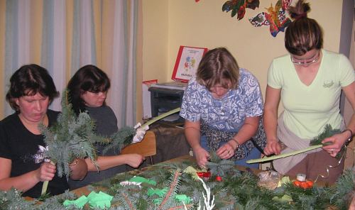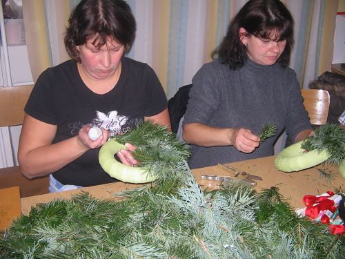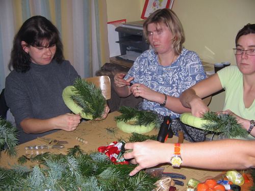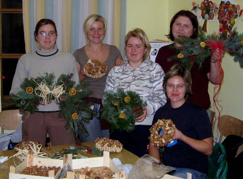 Ve čtvrtek 22. listopadu si deset maminek pod vedením zkušené lektorky Heleny Zápotocké vyrobilo krásné vánoční dekorace. Domů si odnesly věneček ze suchých plodů (například ořechy, bukvice, sušené pomeranče) , který může být hezkým dárkem i celoroční dekorací. Během téměř tříhodinového semináře si maminky "umotaly" i věnec z jedlových a smrkových větví, který některé ozdobily i lýkem, sušenými pomeranči nebo stuhami. Stejnými materiály potom zkrášlily i ramínko. Dověděly se i některé „vychytávky“ a při příjemném povídání, hezký večer rychle uběhl.
