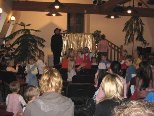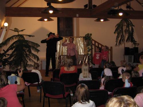 V sobotu 16. května zpříjemnilo dětem i jejich rodičům deštivé dopoledne divadelní představení pohádky O Šípkové Růžence. Téměř sedmi desítkám diváků ji v sále KIC zahrálo Divadlo Evy Hruškové a Jana Přeučila. V rodinné pohádce Jiřího Chalupy a Jaromíra Klempíře s mnoha písničkami a krásnými loutkami děti dostaly i krátkou lekci ze správné mluvy od Jana Přeučila, zatančily si na plese, dvě děvčátka si zahrala sudičky a všichni společně pomohli hodnému zahradníkovi Vojtíškovi zvítězit nad prokletím i nebezpečným trním. Představení skončilo dlouhým potleskem. :)
