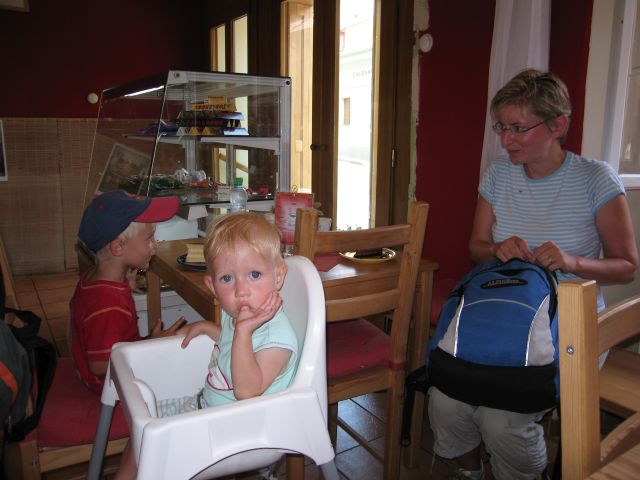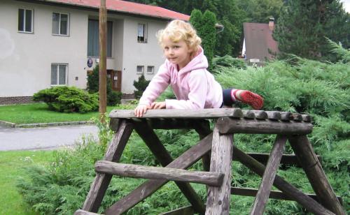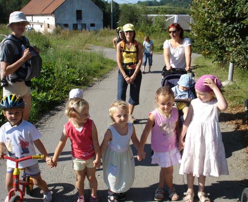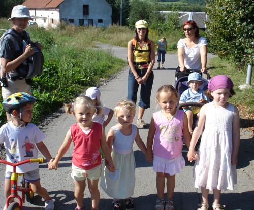 První prázdninový výlet vedl do Chotouně. Od herny se po modré turistické značce vydala skupinka vedená tatínkem Petrem Koutníkem přes Chotouňský potok na rozcestí Pod Drnkou. Pak se tatínek, tři maminky a celkem šest dětí, včetně dvouměsíční Esterky, vydali po červené turistické značce do Chotouně k Přibíkovu mlýnu. Tam se děti okamžitě vrhly na prolézačky, pískoviště i klouzačku. Bohužel restaurace byla ještě uzavřená, ale připravé svačiny zaplnily celý stůl a nikdo nehladověl. :) Hladem netrpěla ani místní koza, kterou děti vydatně nakrmily jetelem. Po odpočinku se všichni vrátili do Jílového po okružní trase přes silnici a rychle a statečně, i s kočárky, zdolali cestu vzhůru lesem a loukou až k lavičce Na Rakovce. Za fotbalovým stadionem se účastníci vycházky začali rozcházet domů. K příjemné atmosféře a zdaru celého výletu přispělo i lehce zatažené nebe. Délka trasy: do 4 km