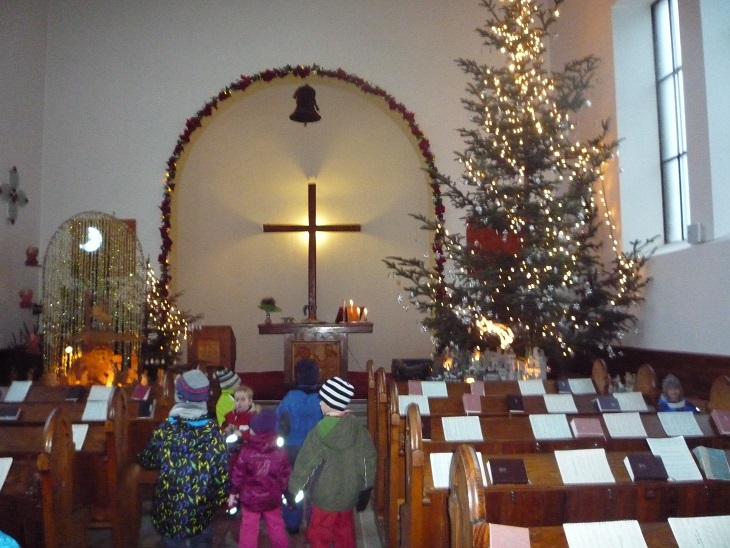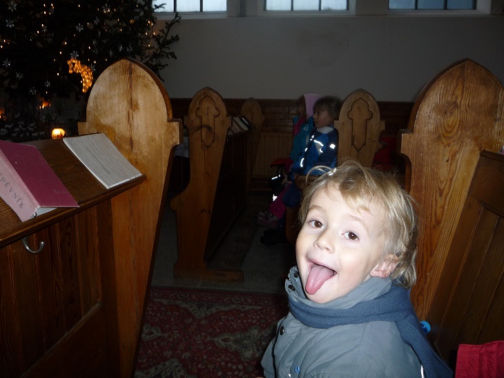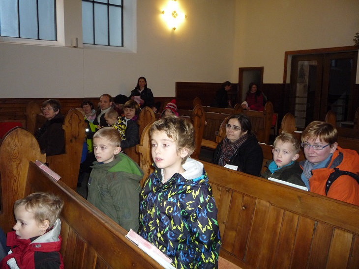 V úterý 18.12. odpoledne jsme se setkali v kostele církve českobratrské husitské s panem farářem Polinským. Pan farář dětem velmi poutavým způsobem vyprávěl o tradici Vánoc, jejich církevní podstatě i lidových zvycích. Děti si současně mohly zblízka prohlédnout vystavené betlémy a ty odvážnější v závěru zazpívali nebo zarecitovali koledu. I přes nepříznivé počasí a předvánoční shon byla účast poměrně velká a všichni jsme se příjemně na blížící se svátky naladili.